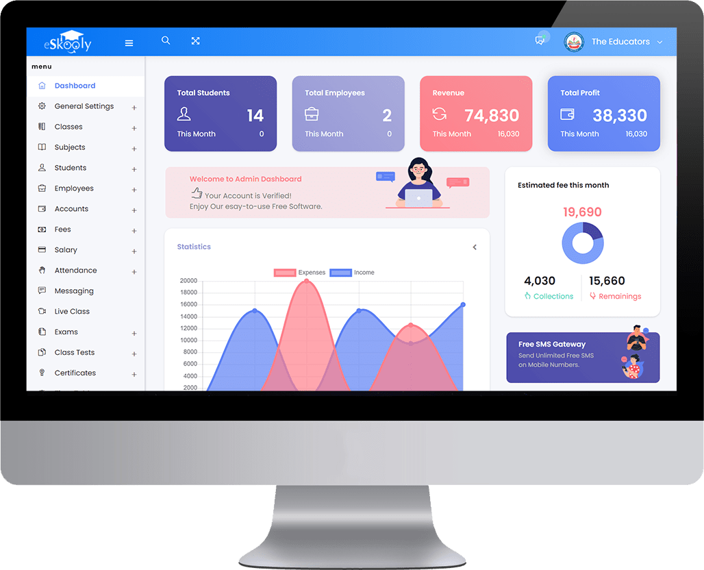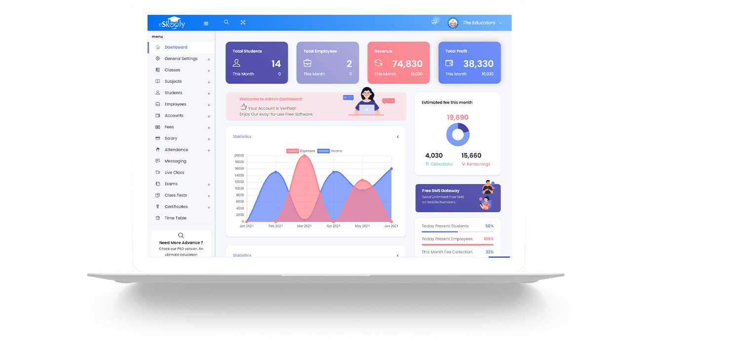 Now you can manage your school, college, or any educational center with eSkooly. It's 100% free for a lifetime with no limitations.